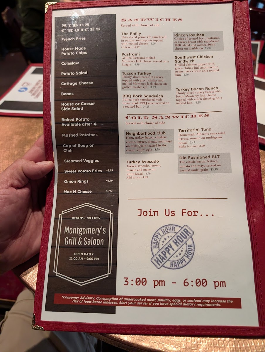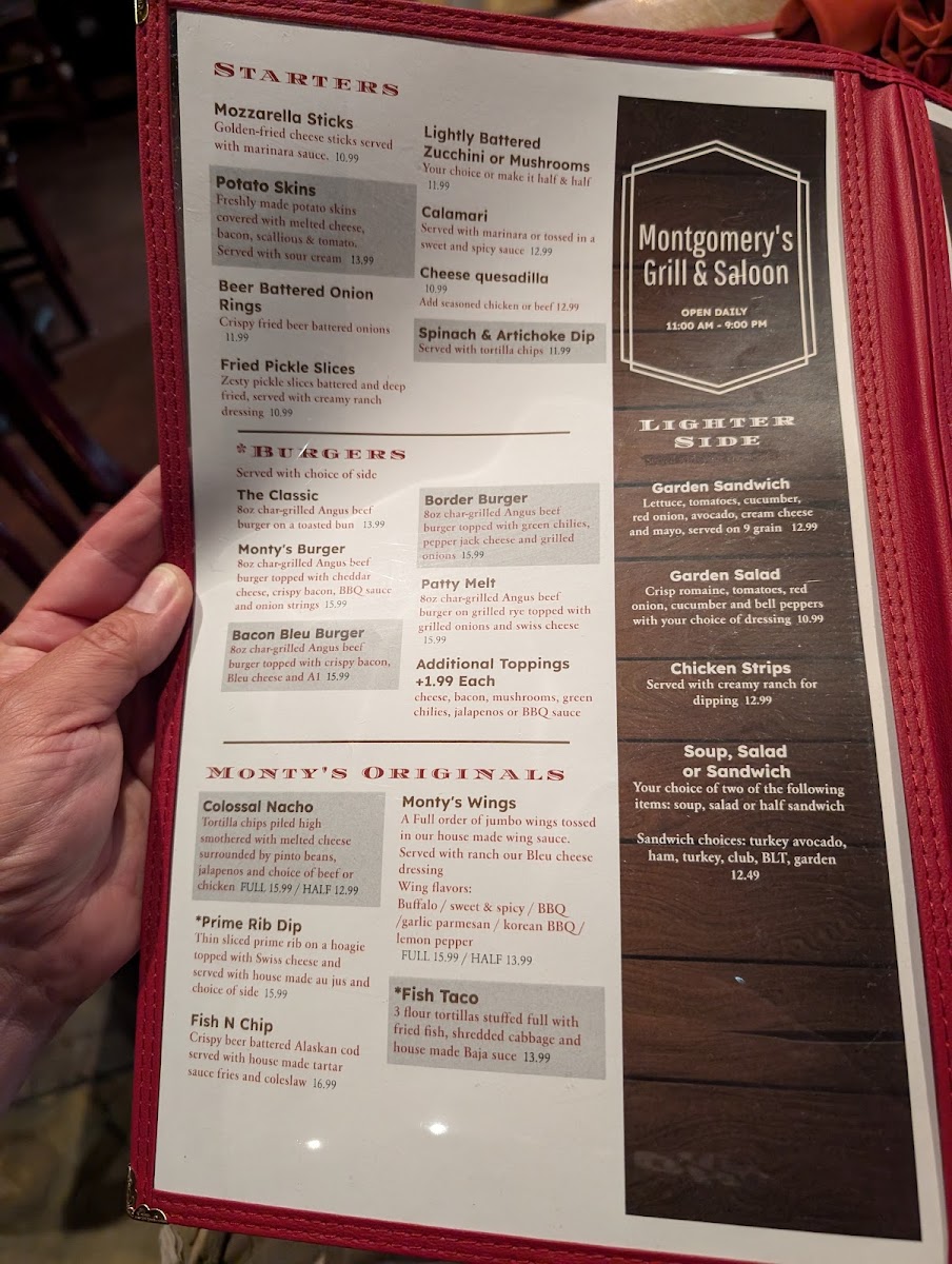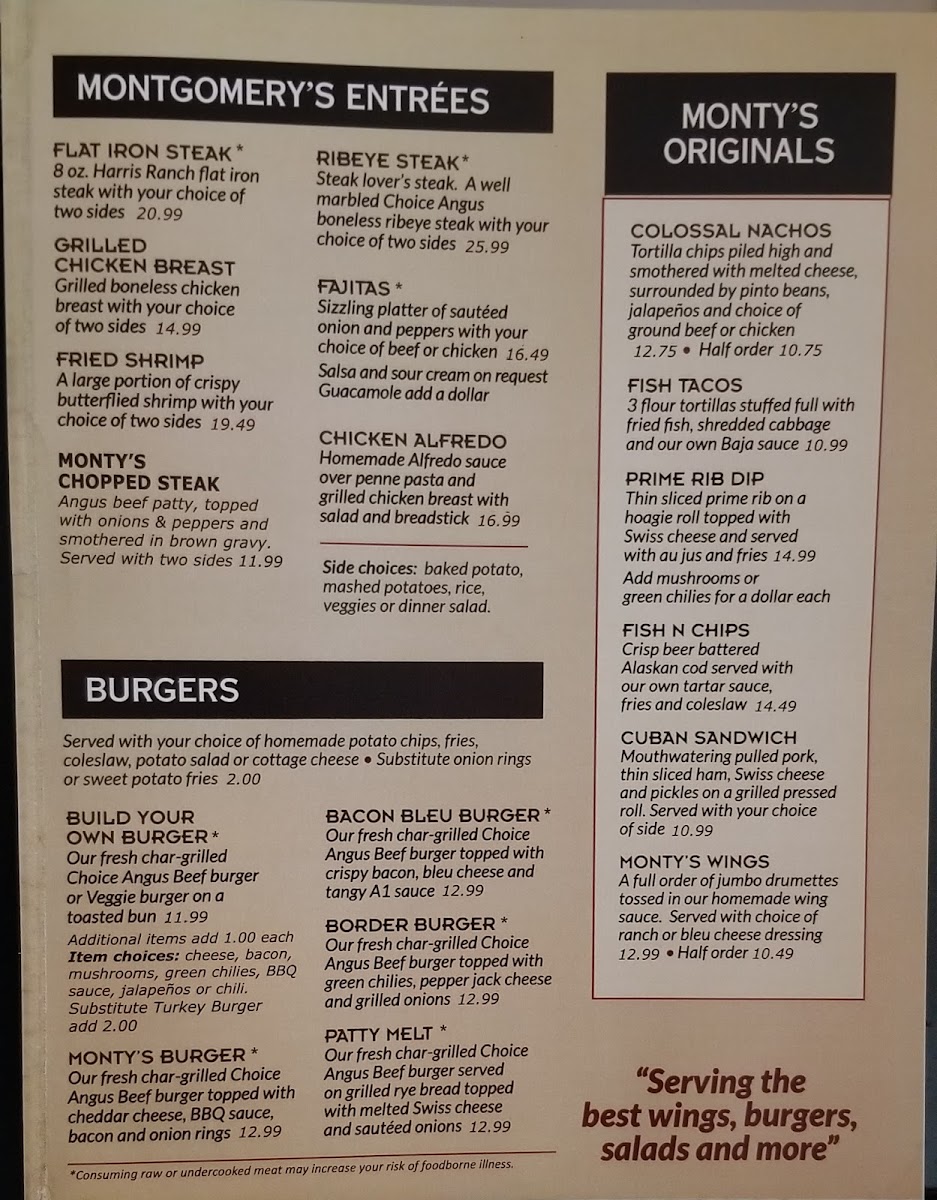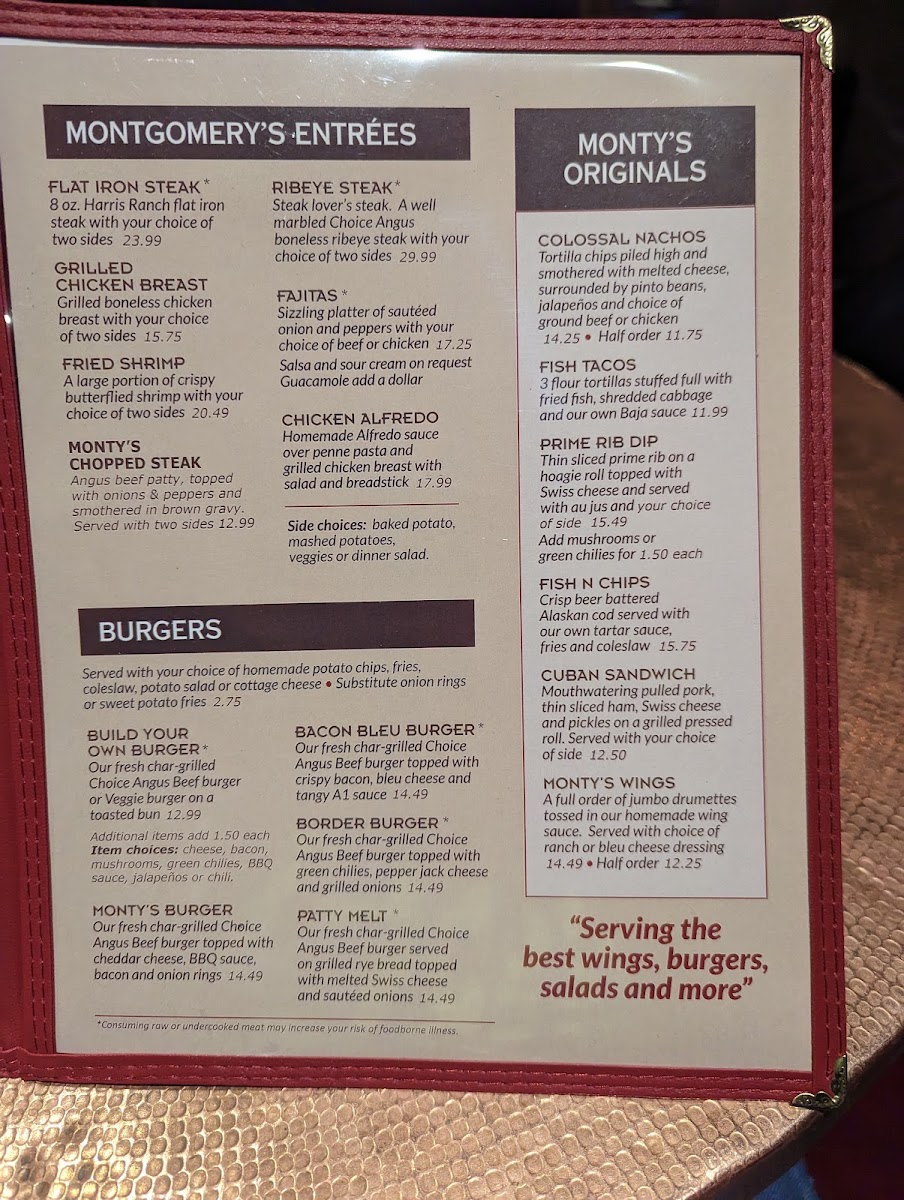 Overall, Montgomery’s menu fits well with its easygoing vibe. Portions are generous, and dishes arrive made to order, supporting a dining experience that emphasizes casual enjoyment and a welcoming environment.
